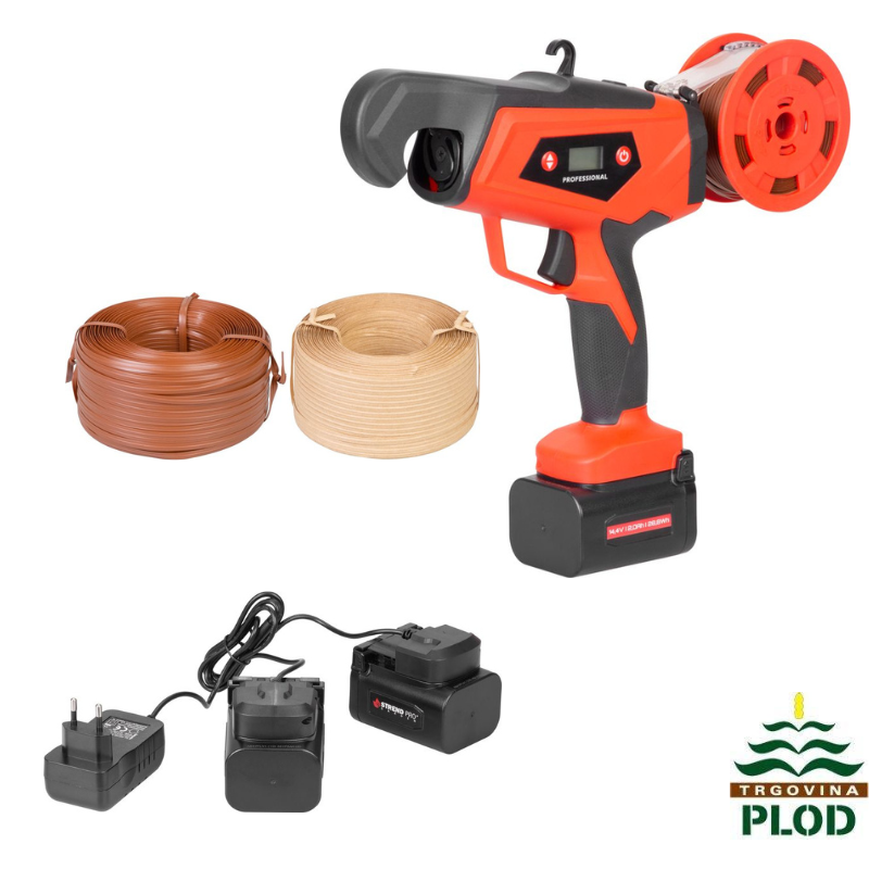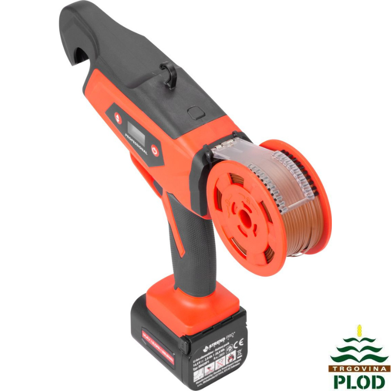 Stroj za vezanje vinove loze Strend Pro Profesional s LCD zaslonom prvenstveno se koristi za vezanje izdanaka vinove loze (ili drugih biljaka) maksimalnog promjera 25 mm. Značajno olakšava rad u vinogradima, rad nije samo jednostavan, već je i vezani spoj puno kvalitetniji nego kod ručnog vezanja. Omogućuje do 8000 vezanja s jednim punjenjem.